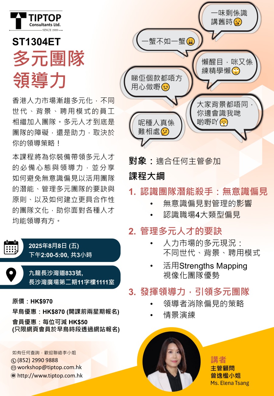 歡迎致電2990-9865,或電郵至 workshop@tiptop.com.hk ,與李小姐聯絡。